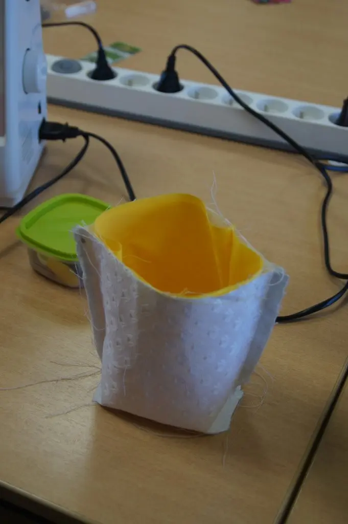 Les présentes apprennent aujourd'hui le point et le biais. Le biais est une pièce, un genre de ruban coupé dans la diagonale à 45 degrés dans du tissu. L'angle permet au biais de ne pas se déformer.