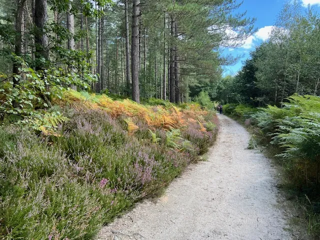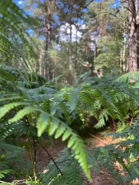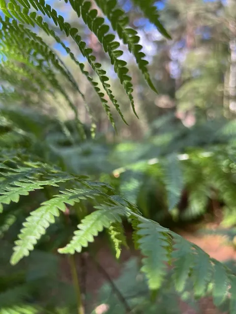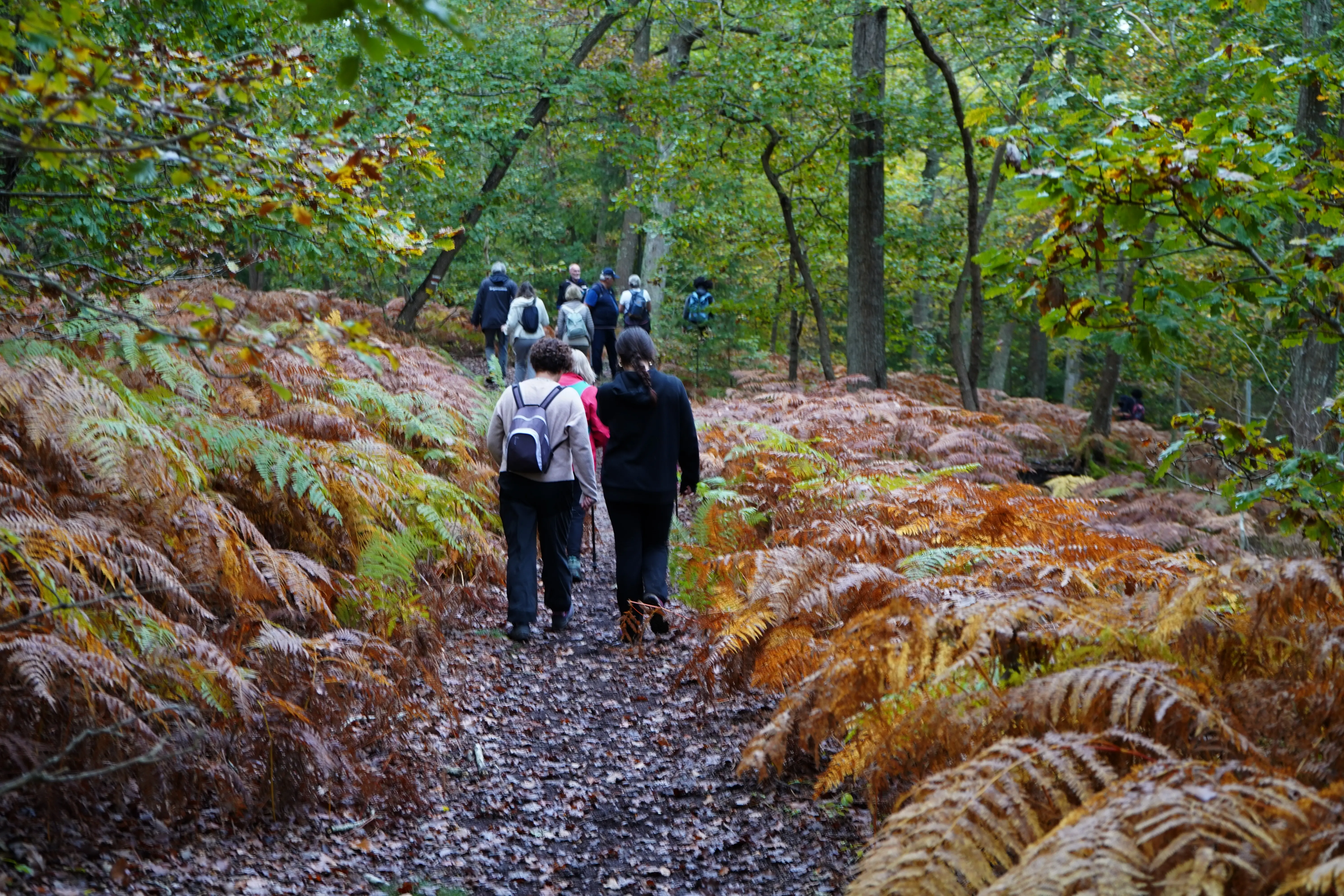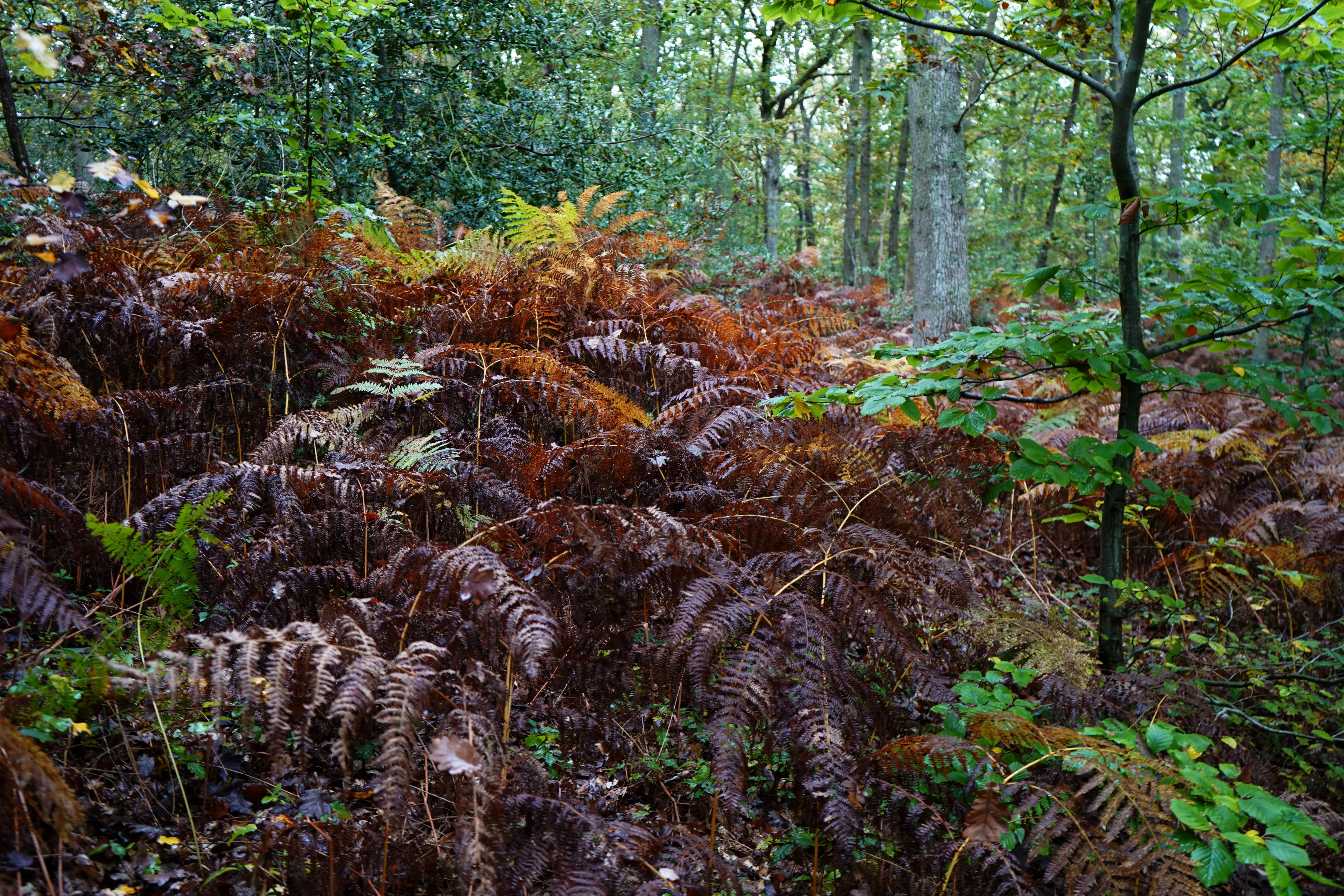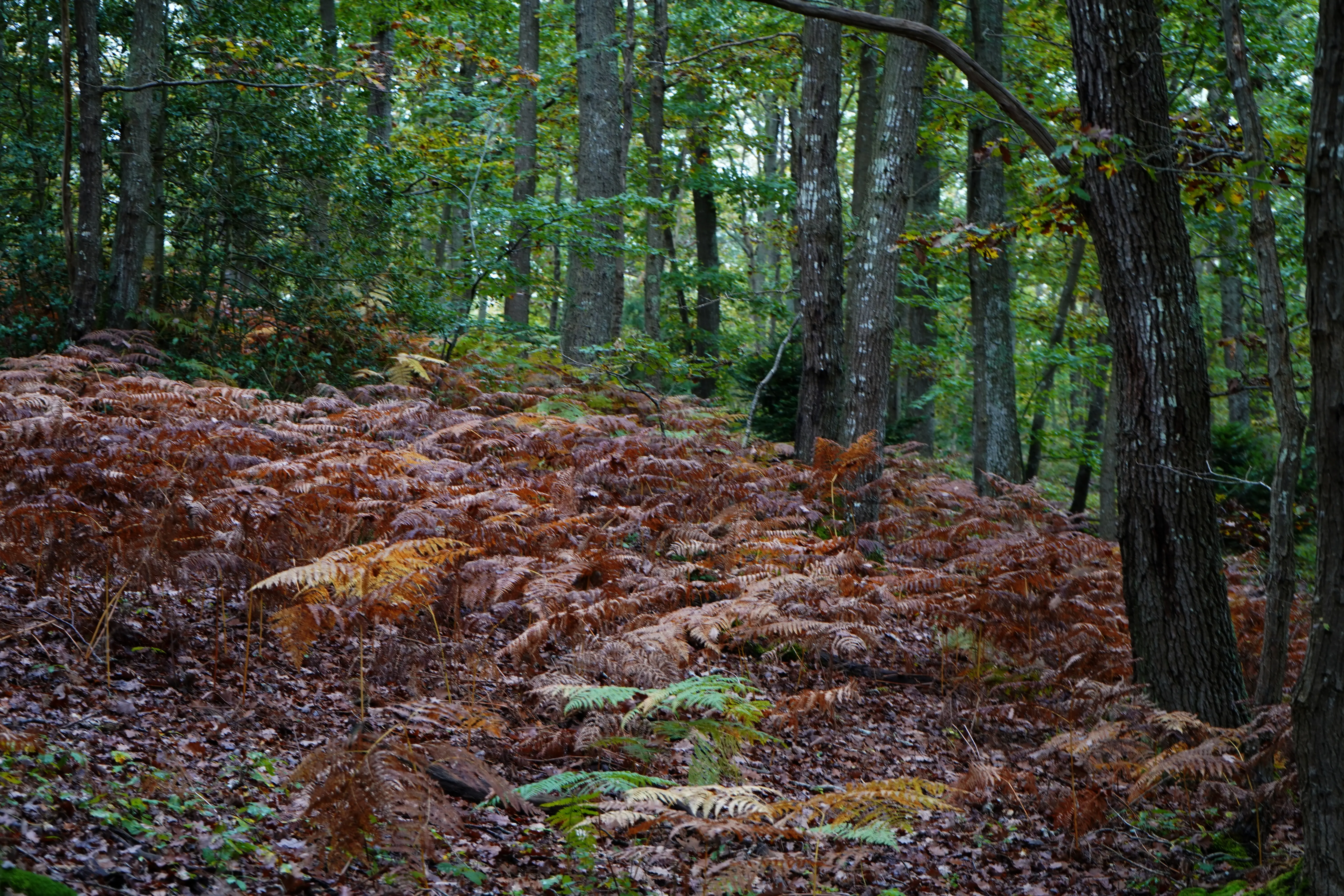 Il y a les senteurs de l'automne, et il y a la végétation, comme ces fougères, là, bien alignées sagement le long du chemin, qui magnifient à elles seules la saison.