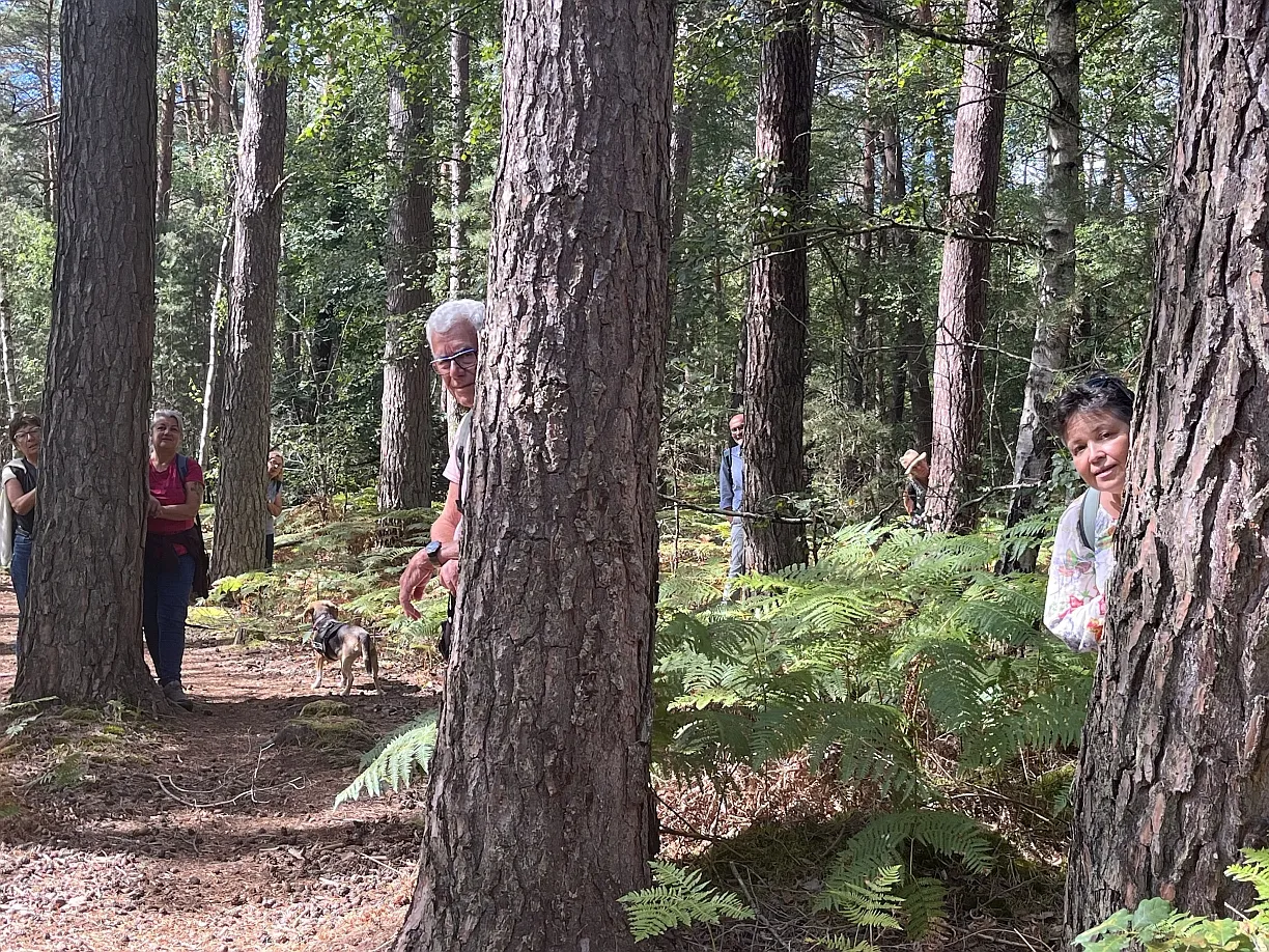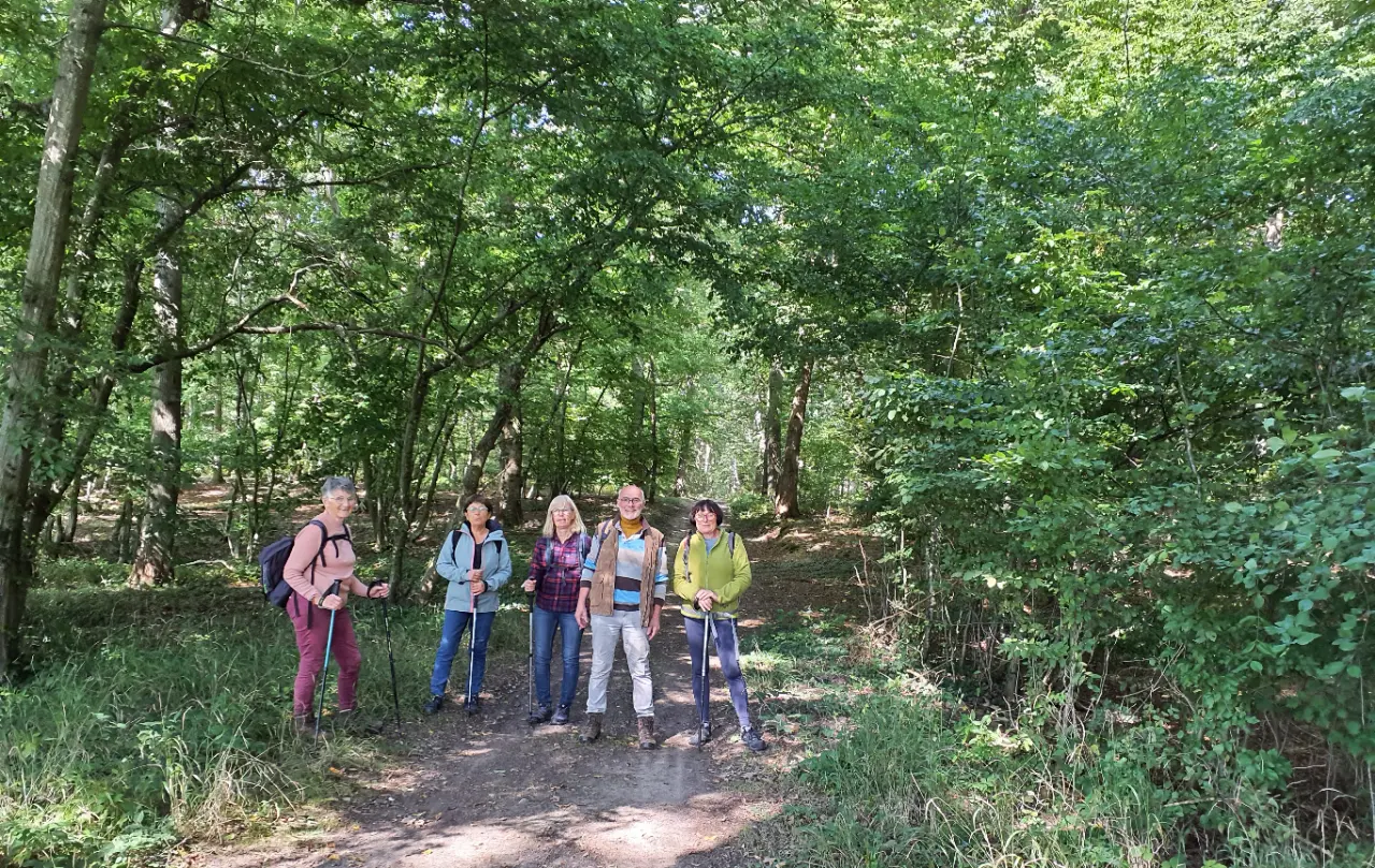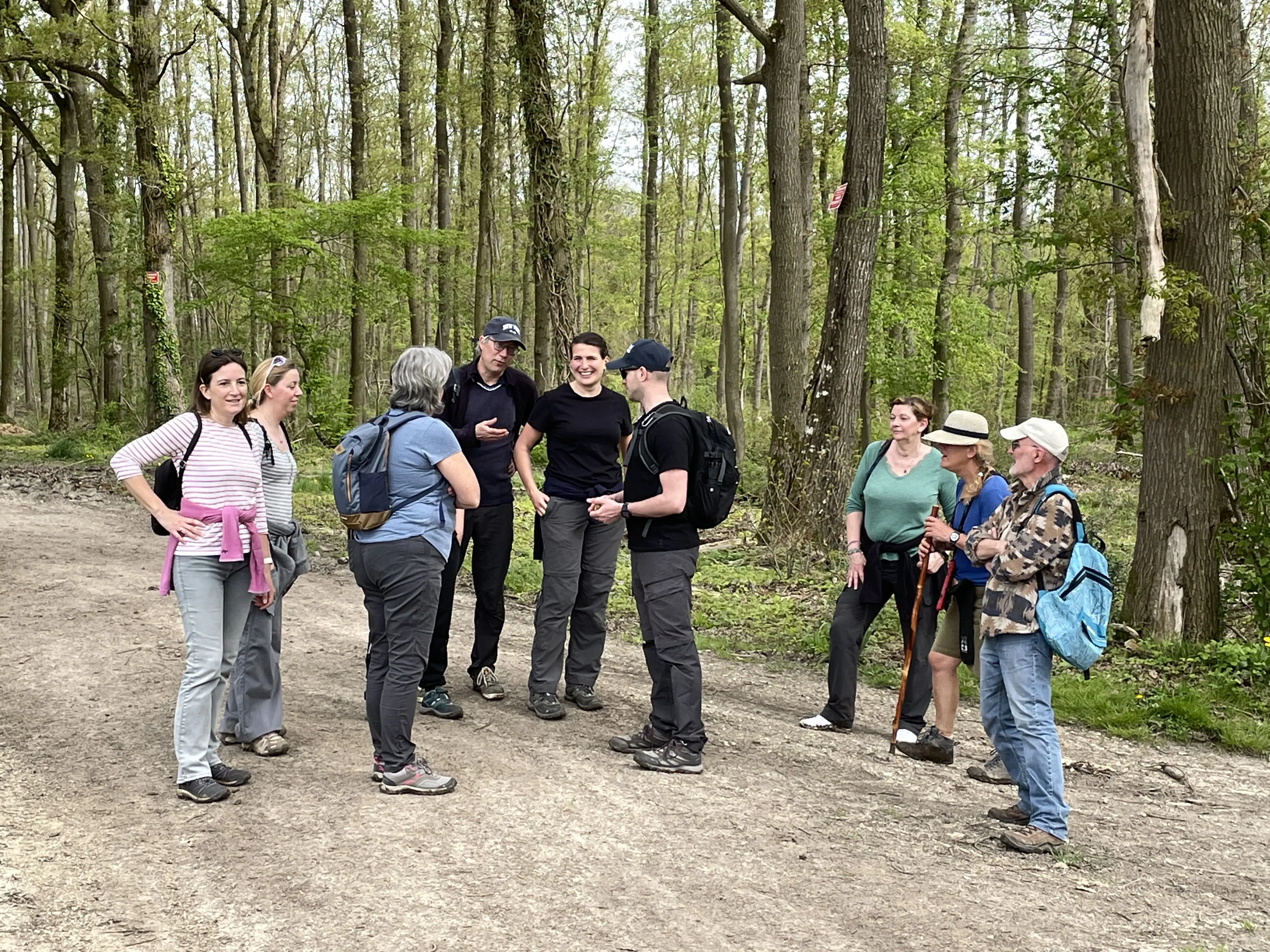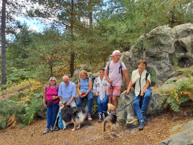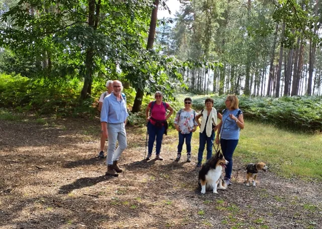 Nous étions 8 randonneurs à 2 pattes et 2 à 4 pattes pour ce petit périple facile d'une dizaine de km dans le massif de St Léger de la forêt de Rambouillet, sous un beau soleil et une température idéale, au départ du hameau des Haies.