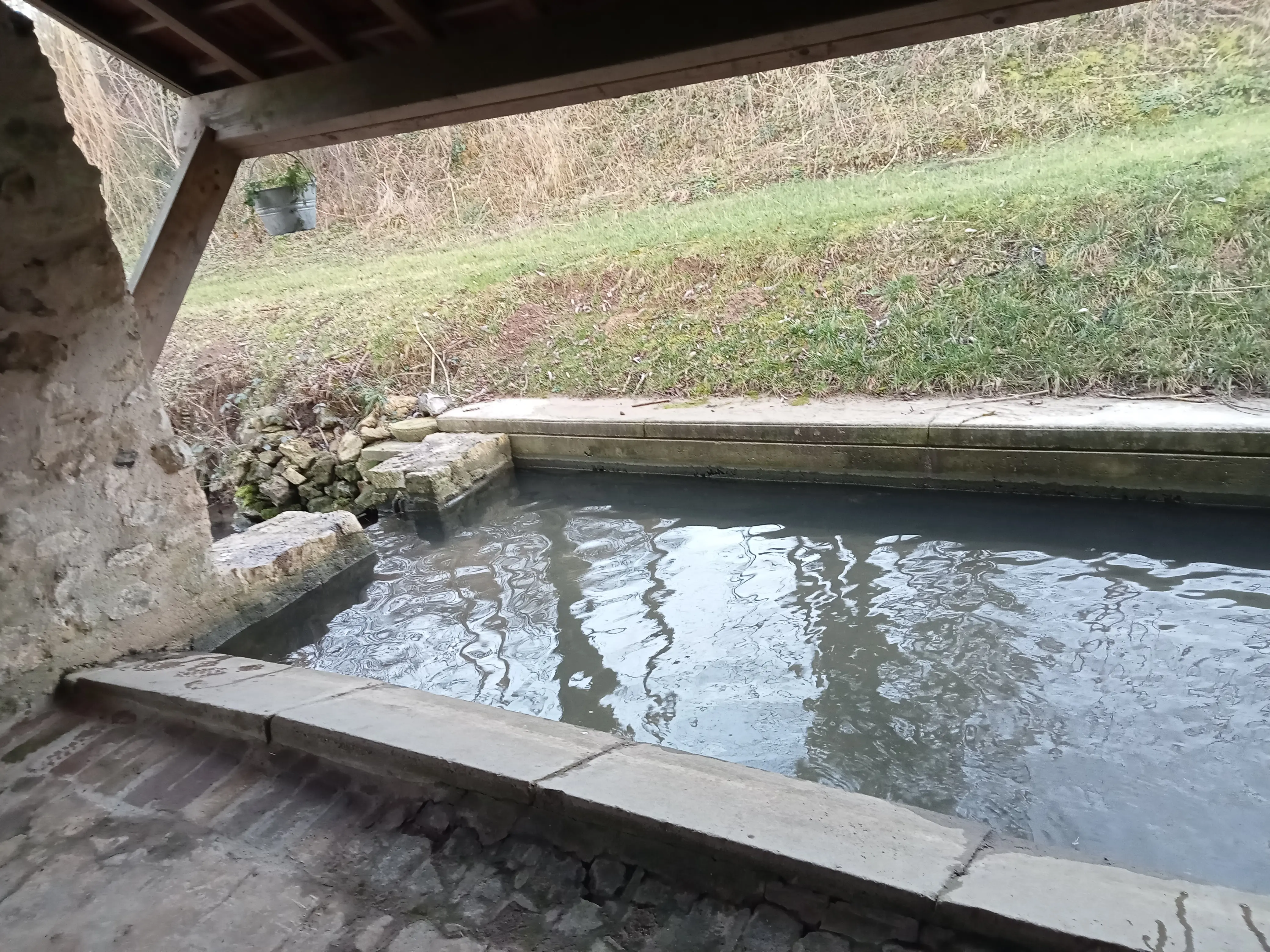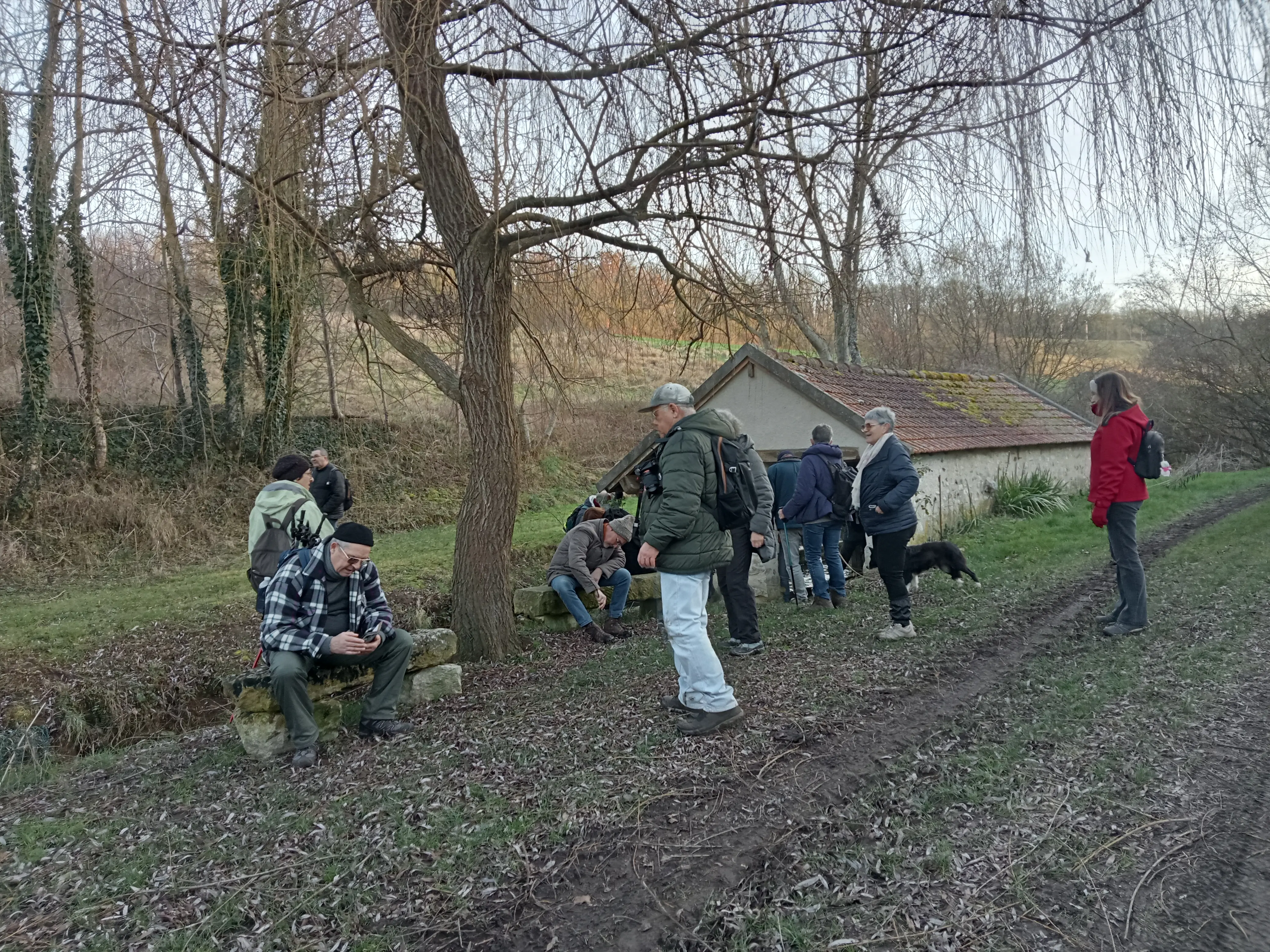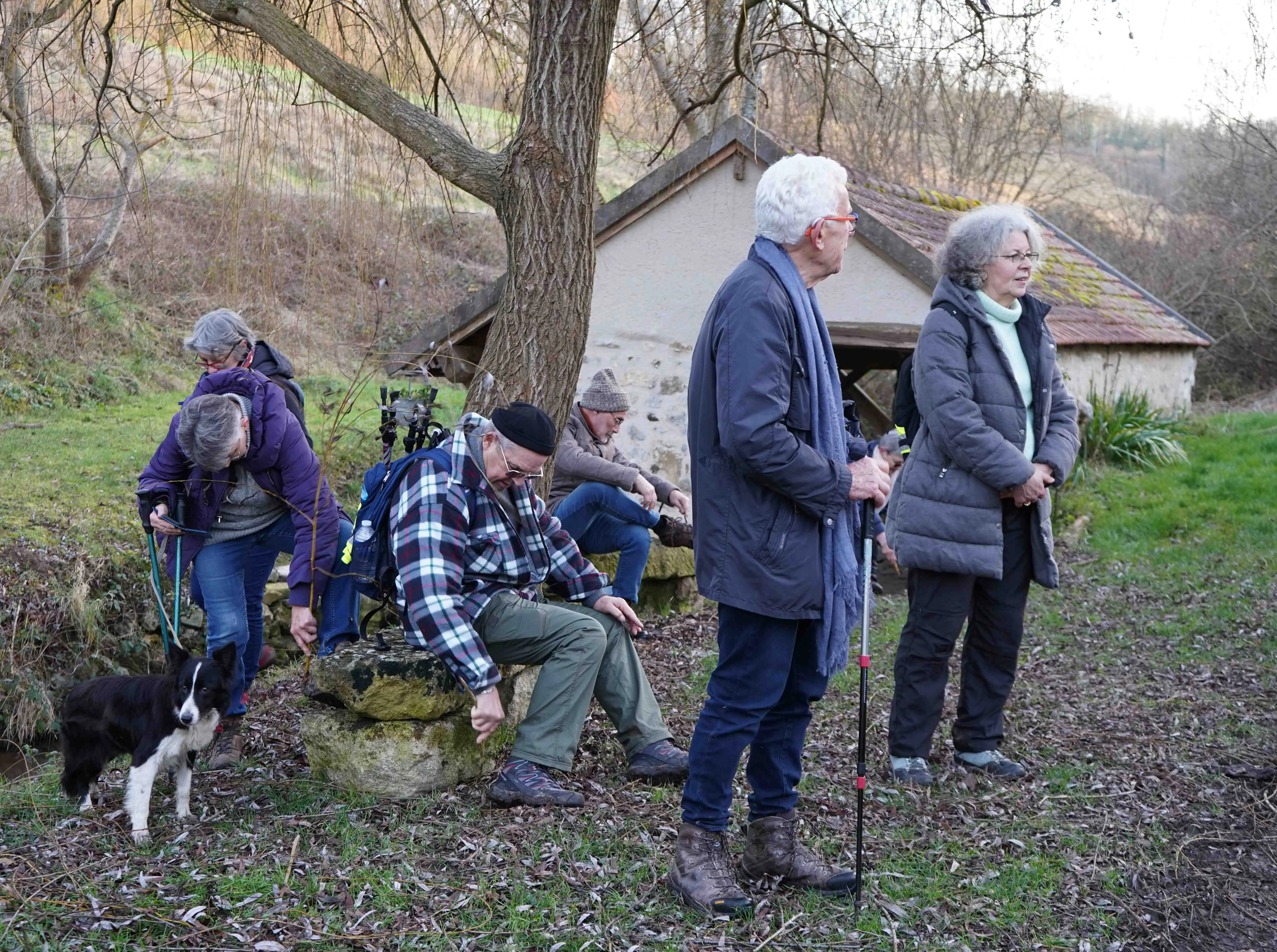 La randonnée se poursuit empruntant parfois des chemins boueux en cette saison et favorisant ainsi une halte et surtout un bon nettoyage des godillots de nos marcheurs !