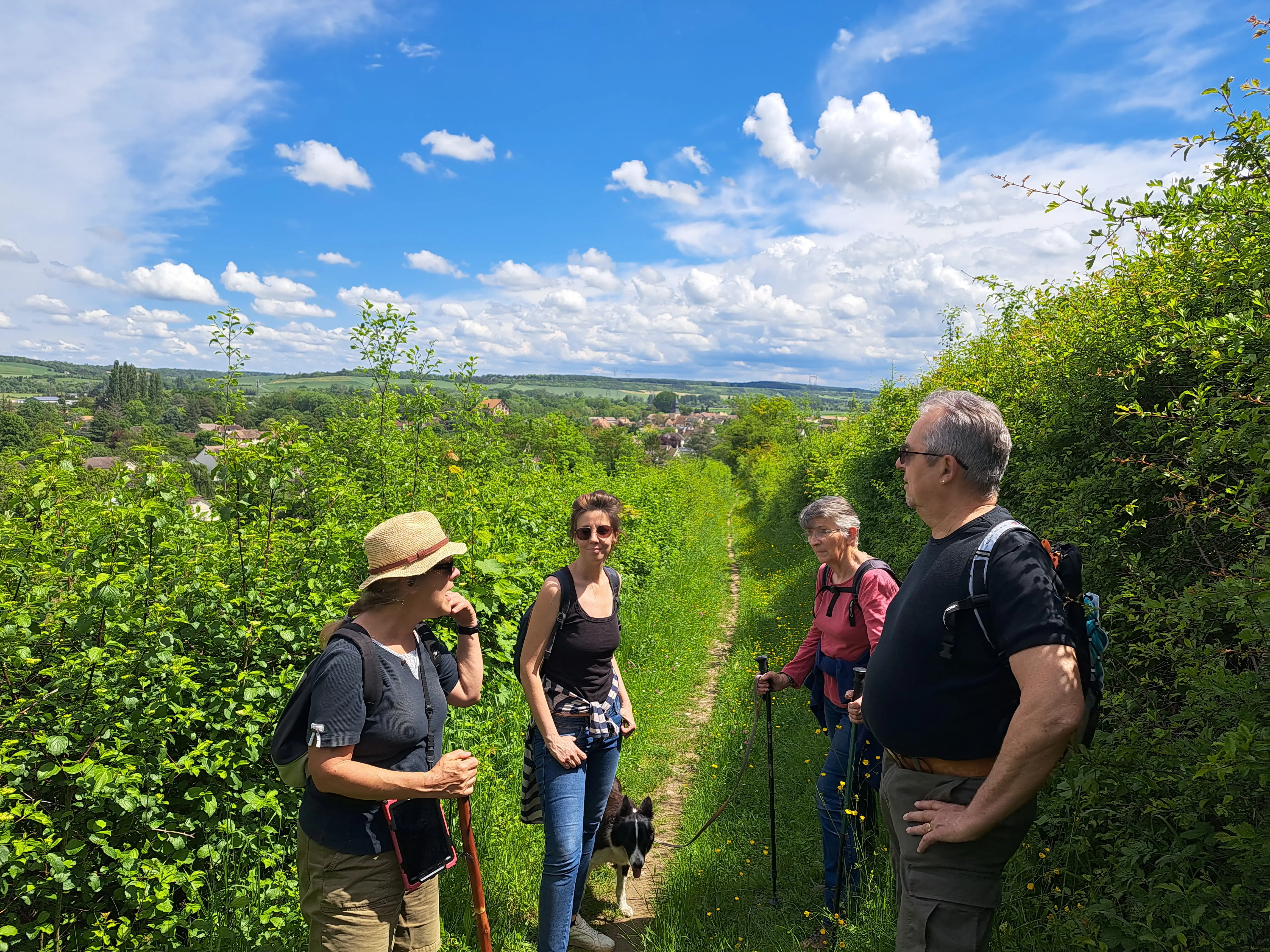 C'est ainsi que nos randonneurs chaussèrent à nouveau leurs godillots et reprirent avec enthousiasme bâtons, chapeaux et gourdes pour arpenter le chemin de la messe, s'égayer dans la vallée Bocquet, puis monter sur Epieds, pour revenir par TourneBoisset dans le bois de Garennes.